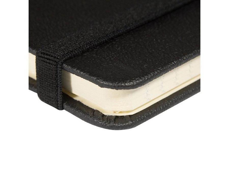 Твердая обложка с углами закругленной формы, фиксирующая резинка и ляссе в цвет обложки, петля для ручки и картонный карман для бумаги на внутренней стороне обложки наделяют блокнот практичностью.