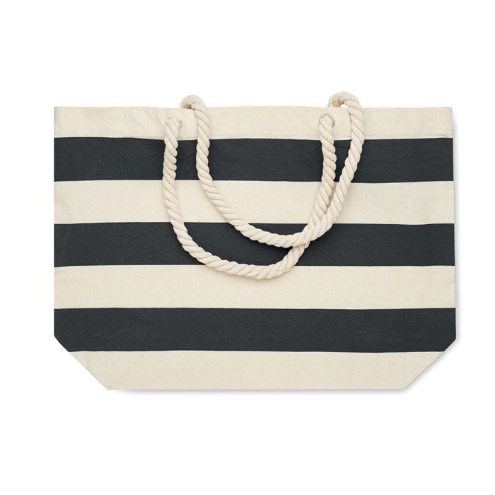 Полосатая пляжная сумка или сумка для покупок из хлопка с ручкой. 220 гр/м².