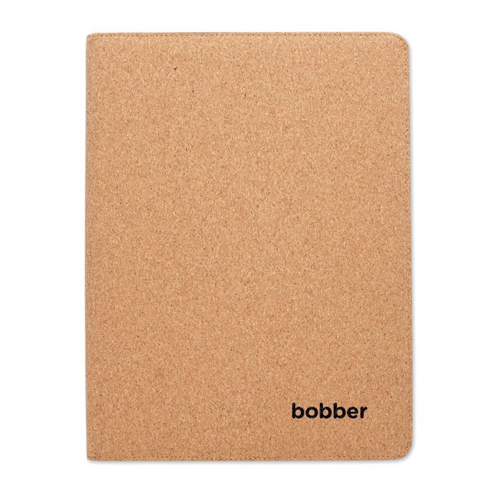 Папка для конференций из пробки формата А4. Блокнот формата А4. 30 линованных листов из переработанной бумаги. Ручка шариковая. 2 держателя для карт и одно большое отделение.