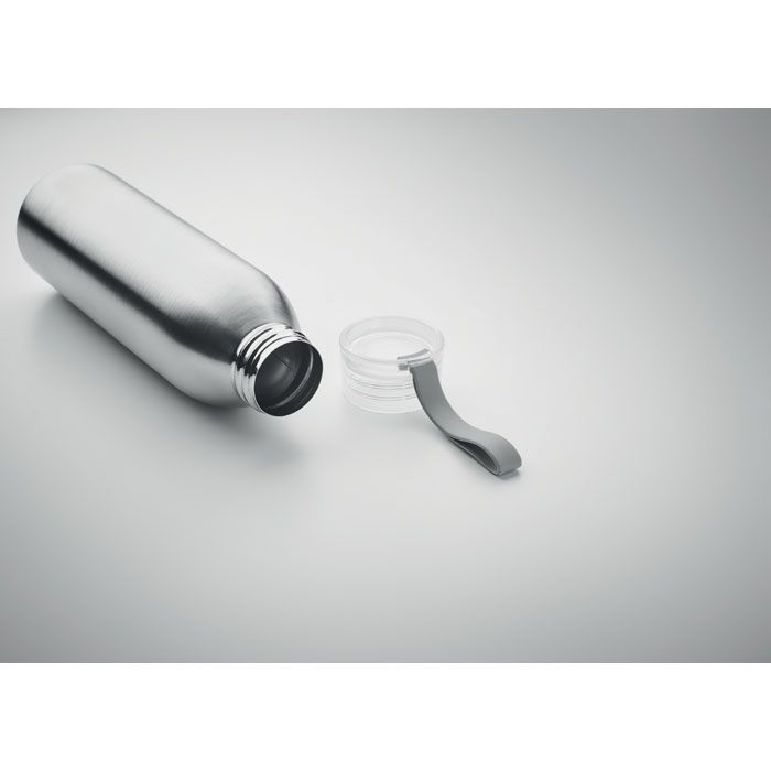 Одностенная бутылка из нержавеющей стали с крышкой из полипропилена и силиконовым держателем. Объем: 650 мл.