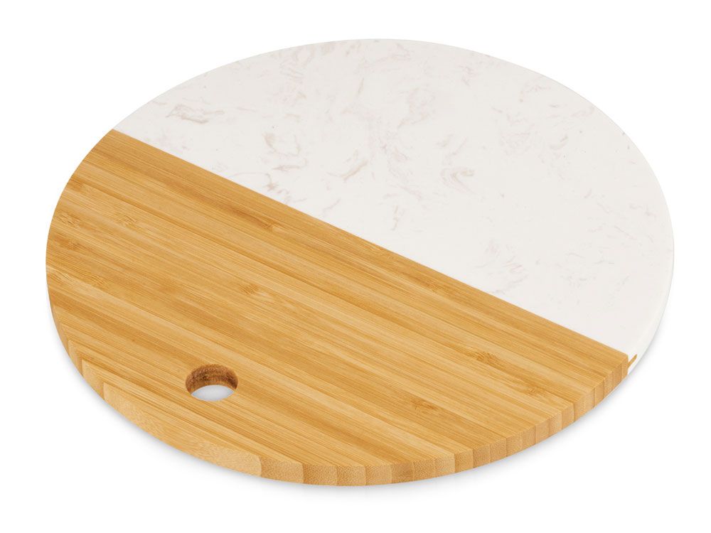 Разделочная доска от Eat&Bite состоит наполовину из бамбука, а вторая половина выполнена из мрамора. Это позволяет не только использовать доску для разделки, но и оригинально подать закуски, сыры или нарезки, зонируя виды снеков.