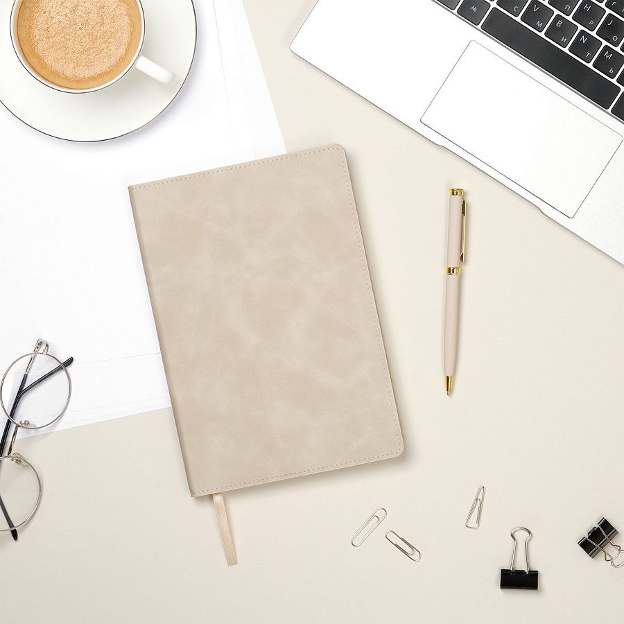 Изысканный недатированный ежедневник Verona станет вашим стильным спутником в мире планирования и идей. Мягкая, приятная на ощупь обложка из высококачественной искусственной кожи с шелковистой текстурой, напоминающей замшу, подарит вам настоящее тактильное удовольствие. Аккуратная прошивка по периметру в тон обложки и скругленные уголки добавляют ежедневнику изысканности и шарма.
