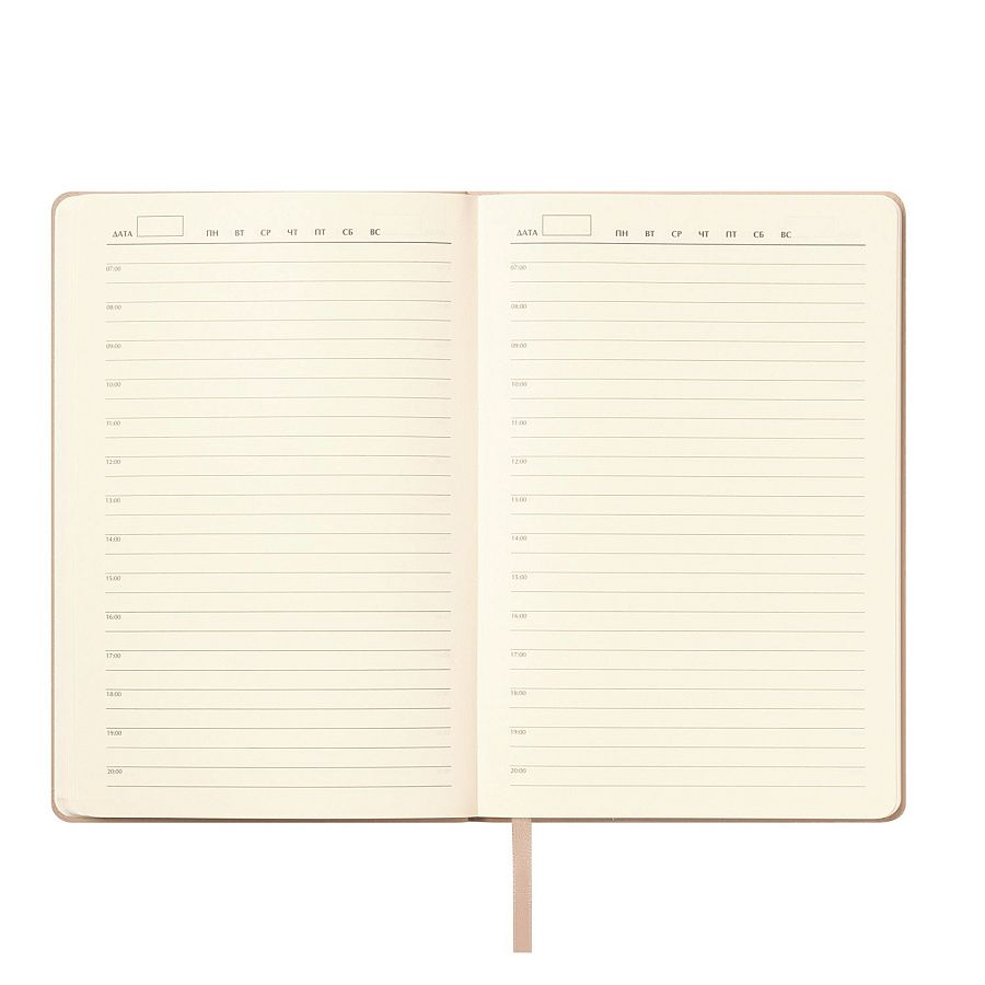 Кремовые форзац, нахзац и срез создают гармоничное сочетание с гладкими, шелковистыми страницами того же нежного оттенка. Удобное атласное ляссе поможет вам быстро найти нужную страницу. Этот ежедневник — не просто инструмент для планирования, а изысканный аксессуар, который подчеркнет ваш безупречный вкус.