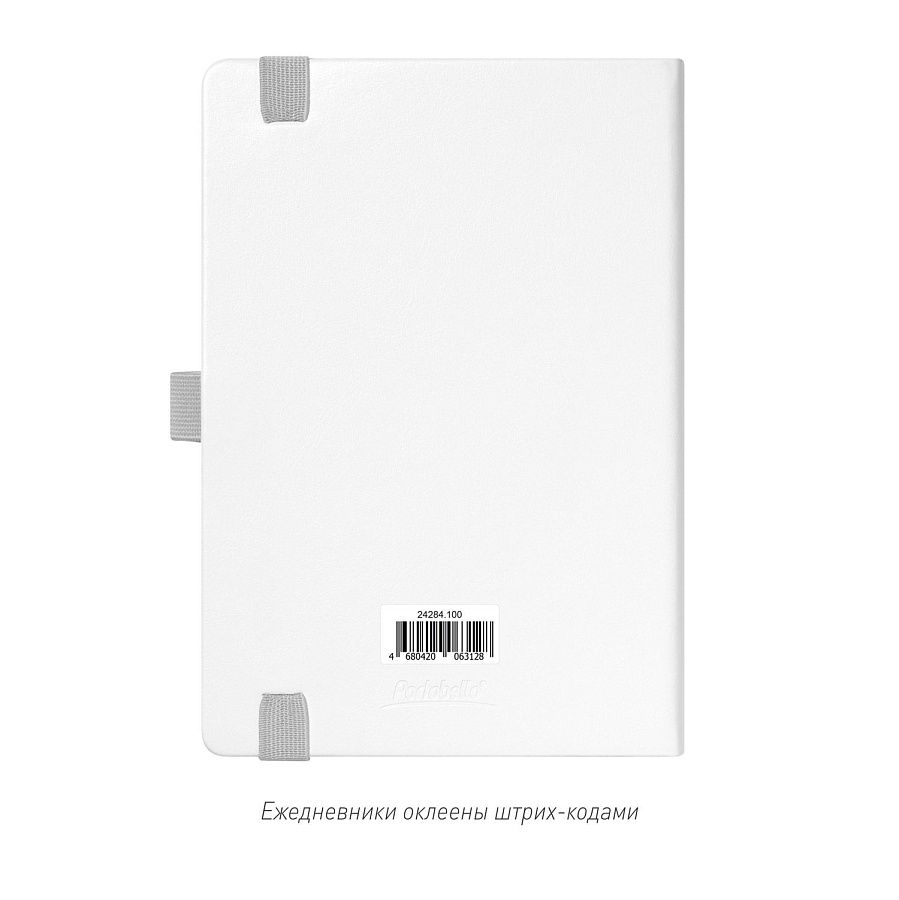 Недатированный ежедневник в жесткой обложке из качественной искусственной кожи. Материал обложки гладкий, текстурированный, с полуглянцевым блеском. Скругленные углы обложки и внутреннего блока. Отличительная особенность коллекции — голографический фольгированный срез блока. Форзац/нахзац– серые. Вариант в жесткой обложке украшен широкой вертикальной резинкой-фиксатором с вставкой из ПУ-материала обложки и петелькой под ручку, а также двойным ляссе (серым и в тон обложки).