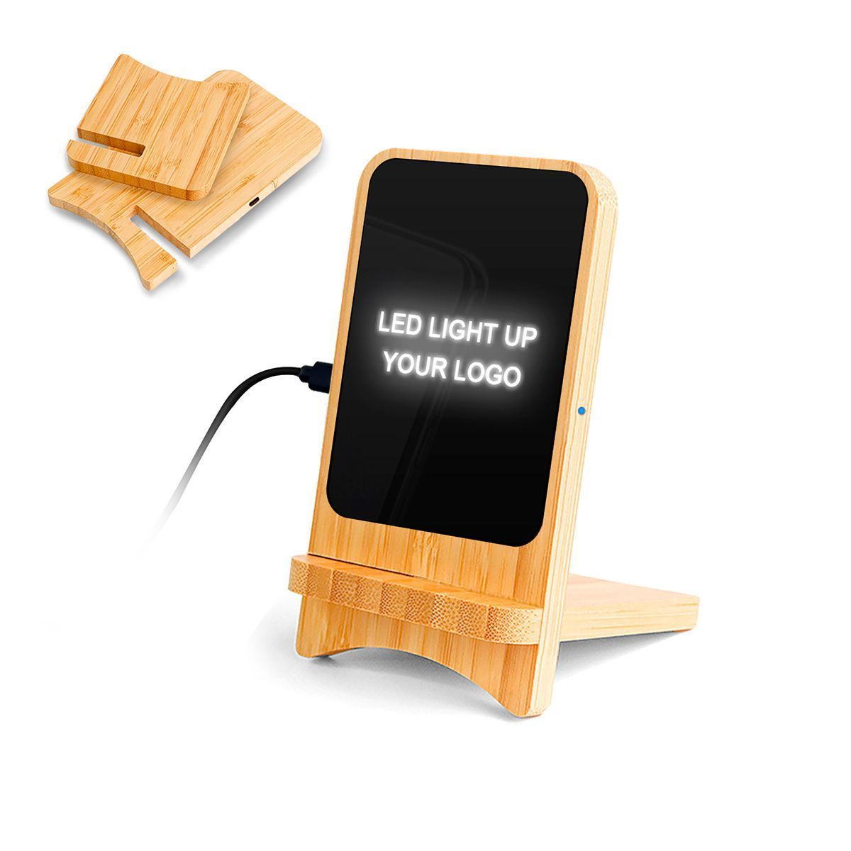 Беспроводное (10W) зарядное устройство "Bamboo Power" 5000 mAh с подставкой под смартфон, бамбук