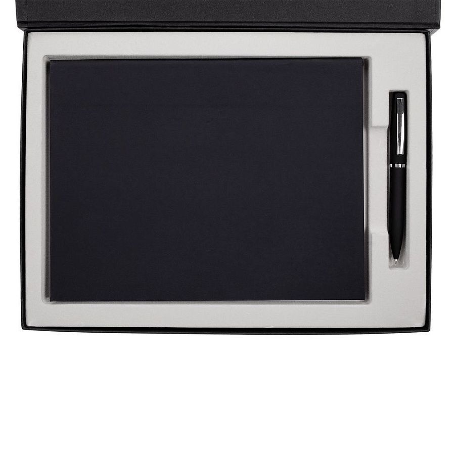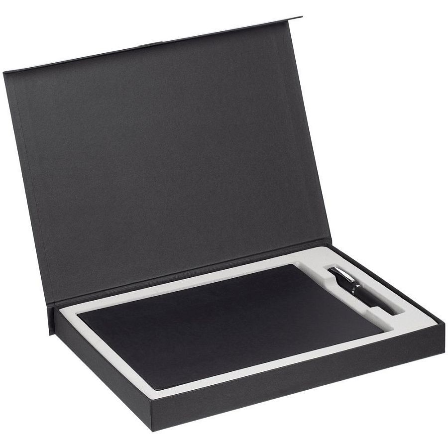 Подарочная коробка, размер 28,5х26,5х4 см, Solution Prestige Linen с магнитным клапаном, черная, с черным ложементом