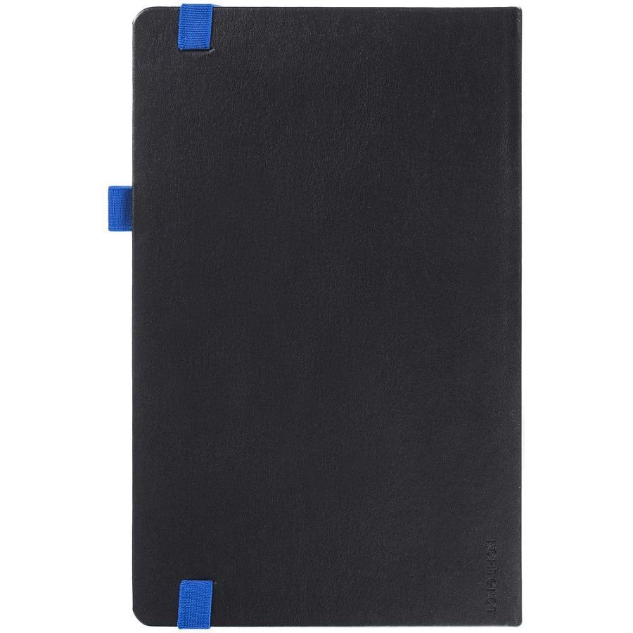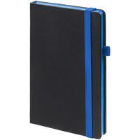 Ежедневник с твердой обложкой, выполнен из материала Waltz, черный АА, дополнен синей резинкой и ляссе.