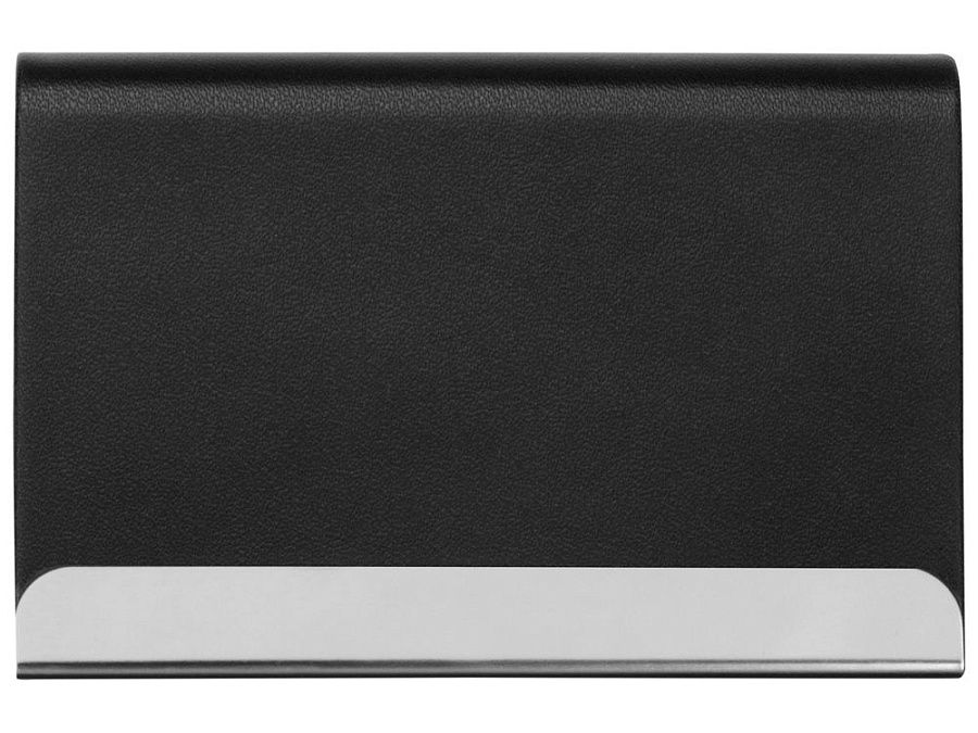 Классическая визитница в сдержанных цветах с хромированным декоративным кантом. Внутри отделана черным бархатом. Вмещает примерно 30 визиток.