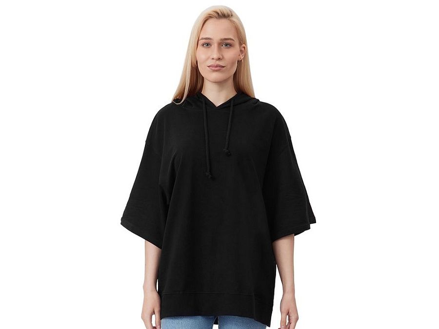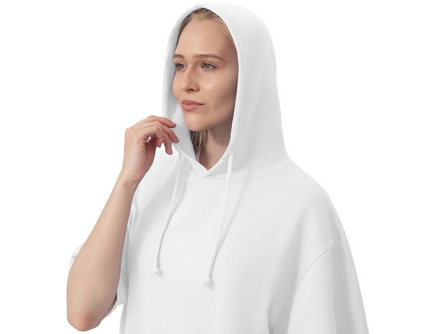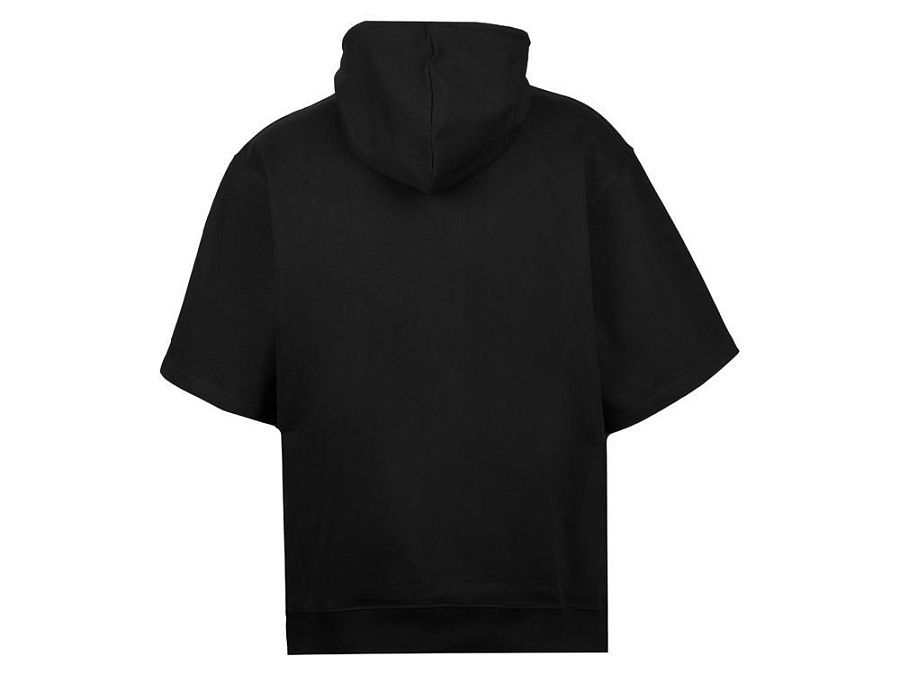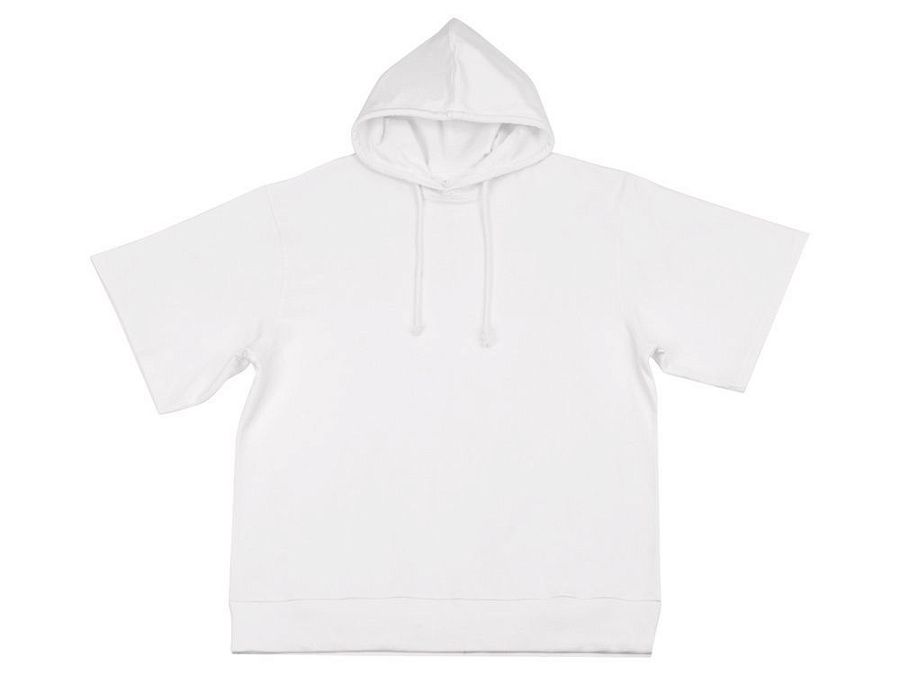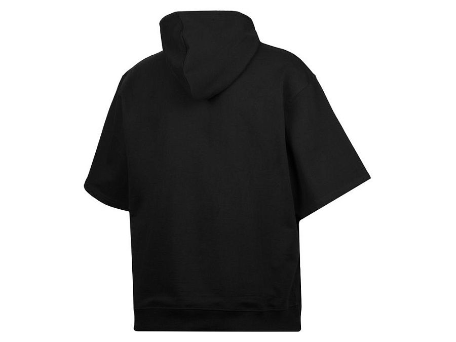 Худи с коротким рукавом выполнено из хлопкового френч терри с петельками на изнаночной стороне. Подкладка капюшона выполнена из основного полотна для объемной посадки. Модель комфортной и актуальной посадки оверсайз отлично подходит для обычной жизни и в качестве промо мерча. - оверсайз посадка - низ обработан рибом 2х2 и дополнительно отстрочен для укрепления - мягкое и качественное полотно френч терри - увеличенная зона для нанесения из-за отсутствия кармана