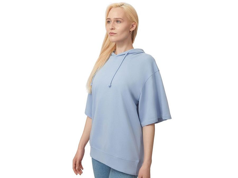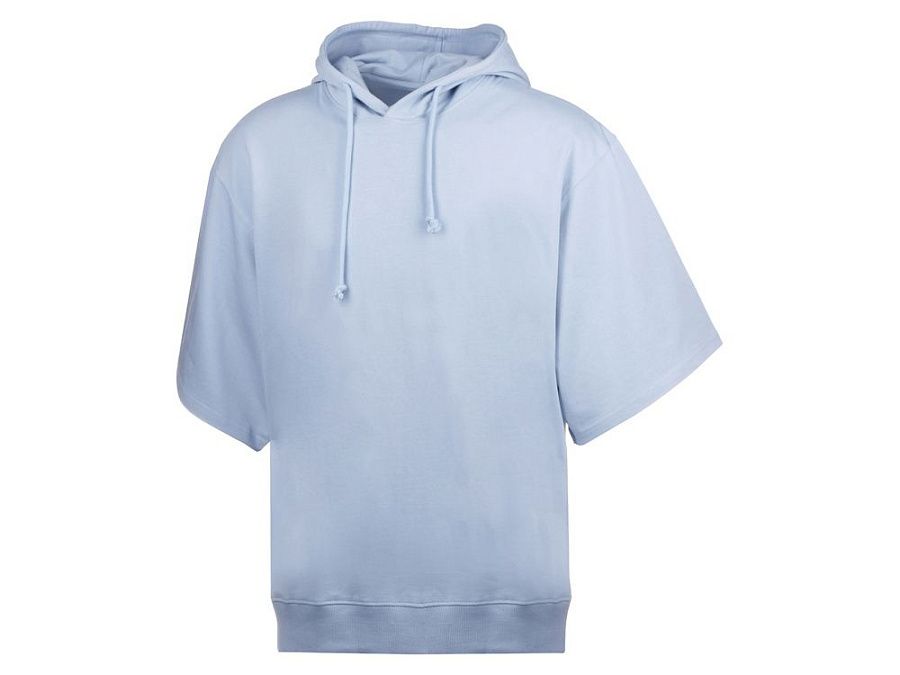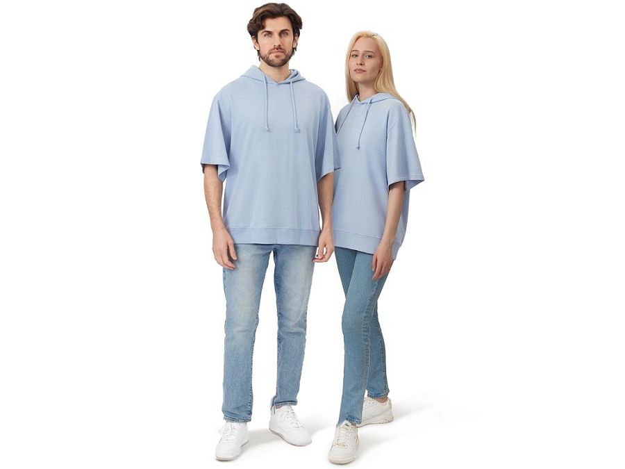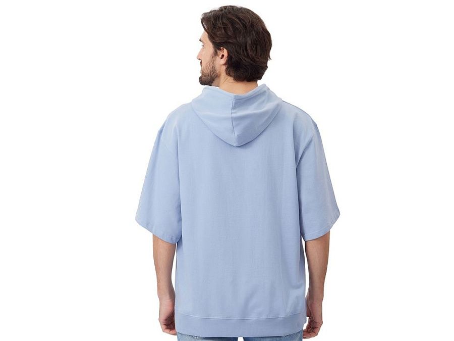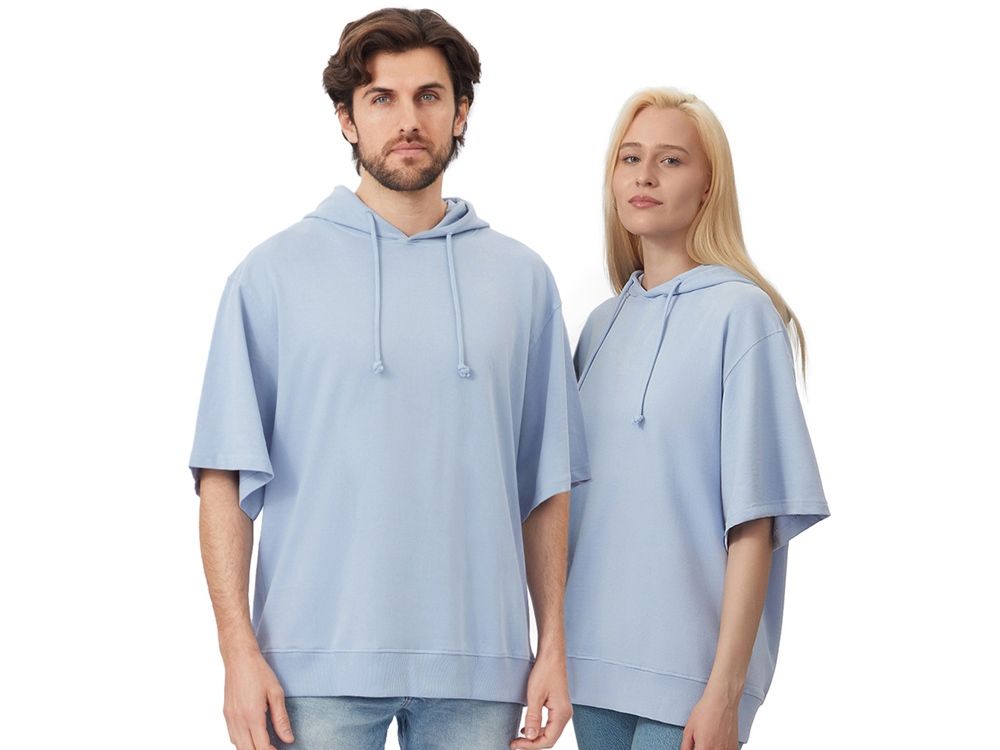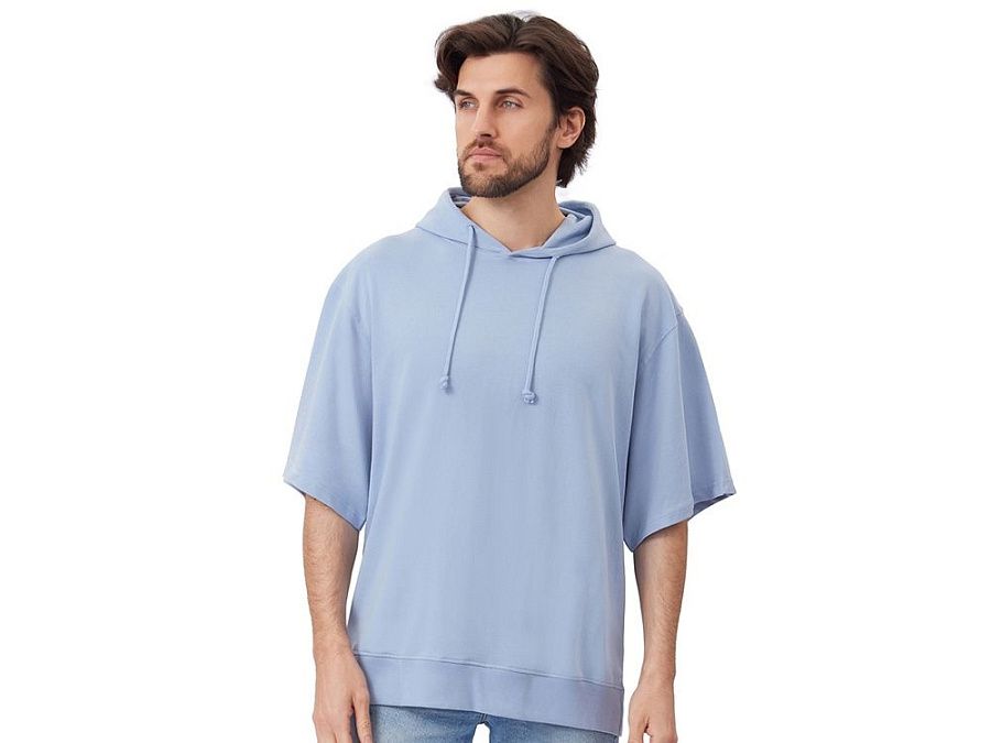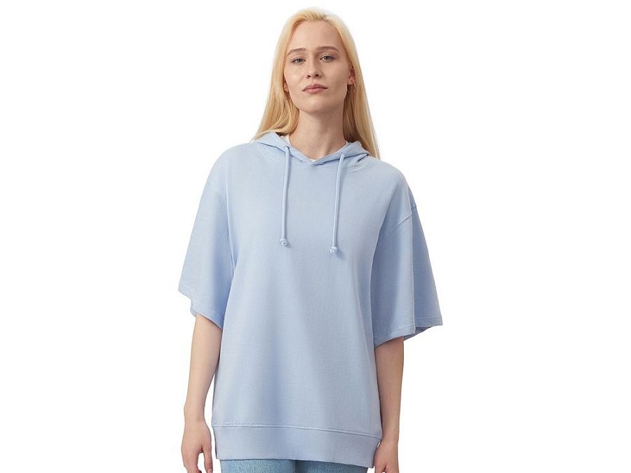 Худи с коротким рукавом выполнено из хлопкового френч терри с петельками на изнаночной стороне. Подкладка капюшона выполнена из основного полотна для объемной посадки. Модель комфортной и актуальной посадки оверсайз отлично подходит для обычной жизни и в качестве промо мерча.