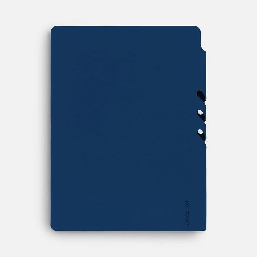 Гибкая обложка выполнена из материала Soft Touch Ultra, синий НН и Latte, синий НН (внутренняя часть обложки). Внутри корешка — специальное место для крепления ручки размером до 15х1 см.