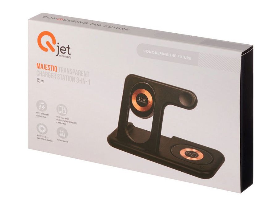 Беспроводная зарядная станция 3-в-1 «MajestIQ», 15 Вт, цвет: черный