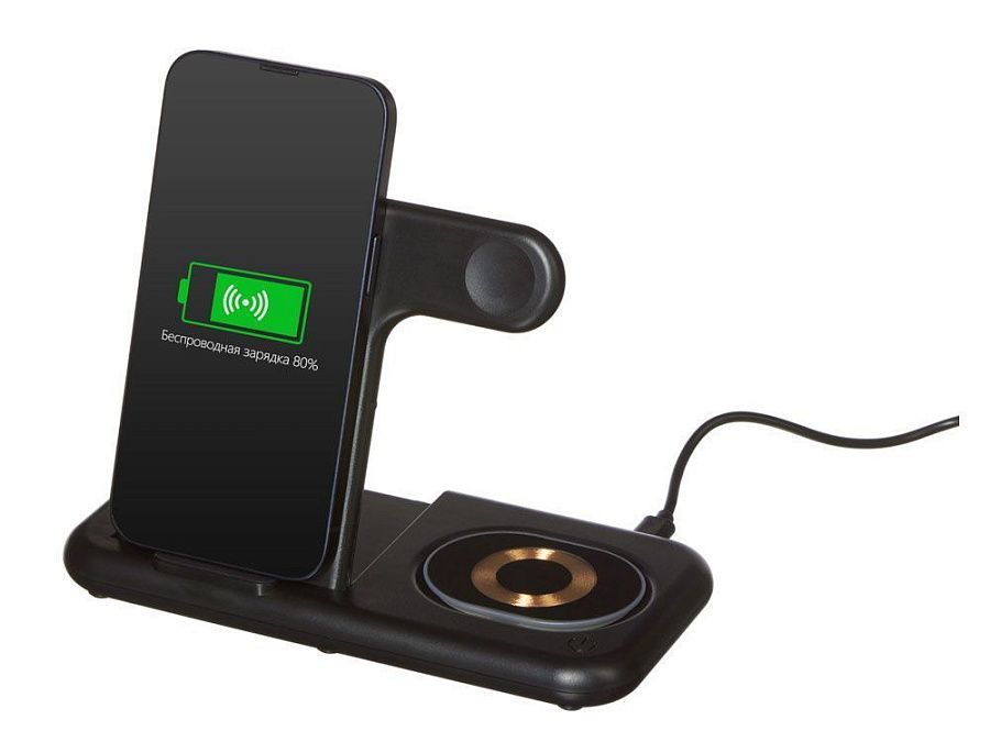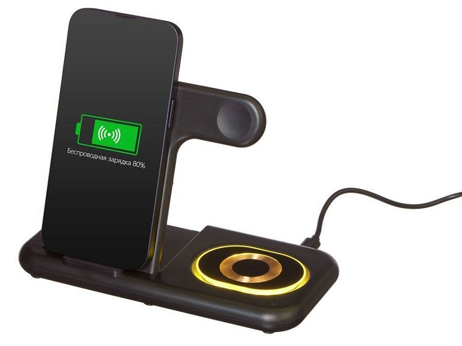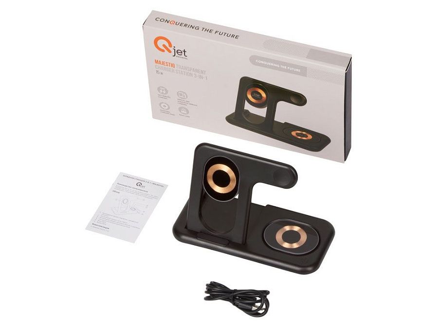 Беспроводная зарядная станция 3-в-1 «MajestIQ», 15 Вт, цвет: черный, артикул 188101