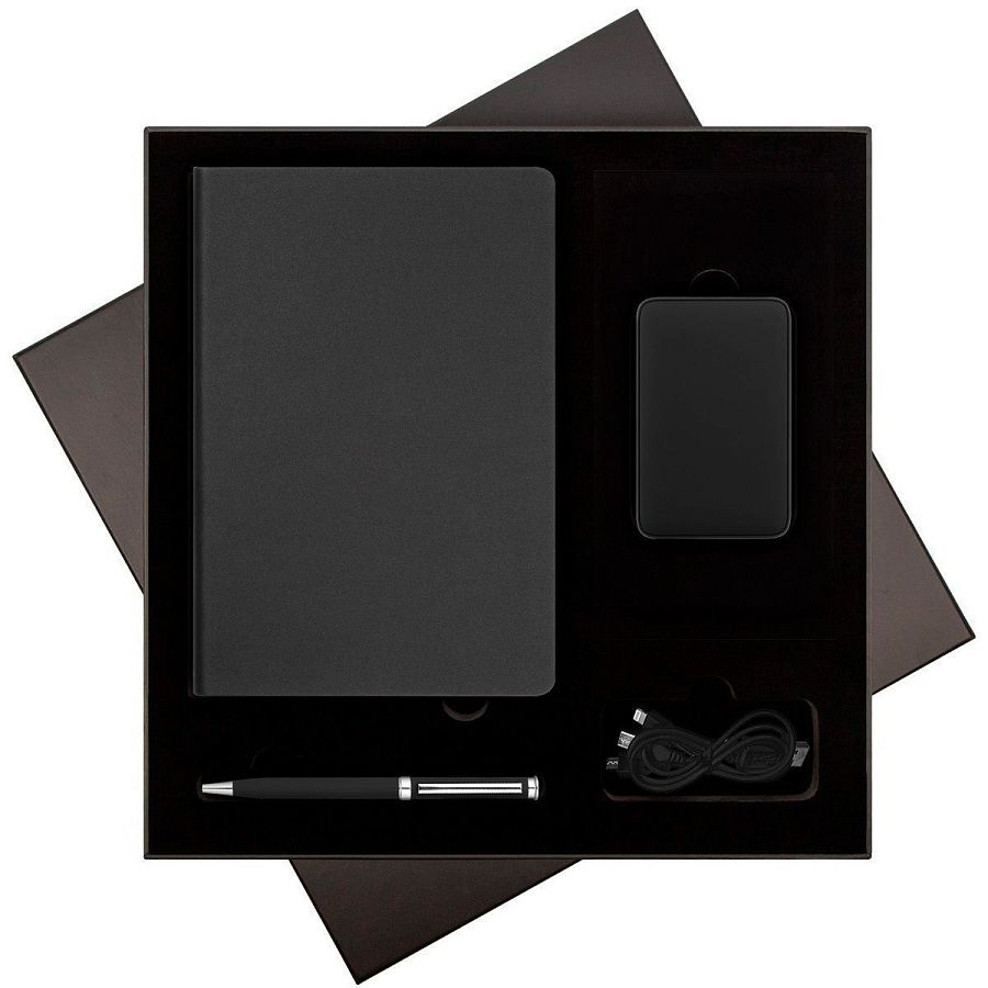 Подарочный набор River side, черный (ежедневник, ручка, аккумулятор), артикул 2500114.010