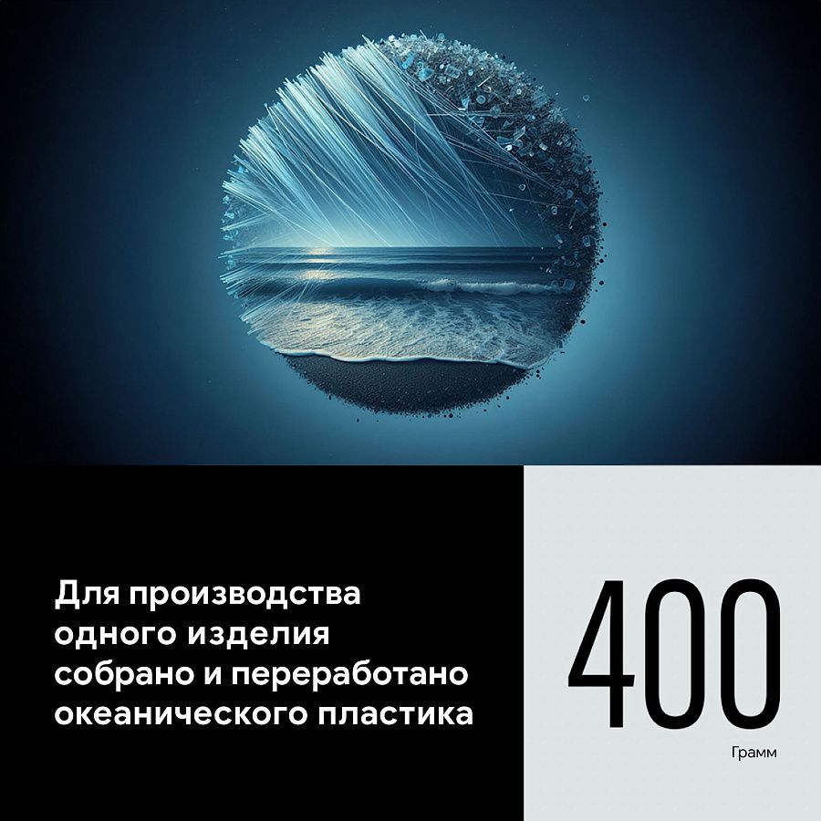 Ткань получена из пластика (бутылок) собранного в прибрежных зонах, наиболее подверженных загрязнению. Благодаря прозрачной производственной цепочке путь пластика от места сбора до фабрики легко отследить. Сертификат OCEANCYCLE является знаком качества, он признан во всем мире и подтверждает происхождение сырья.