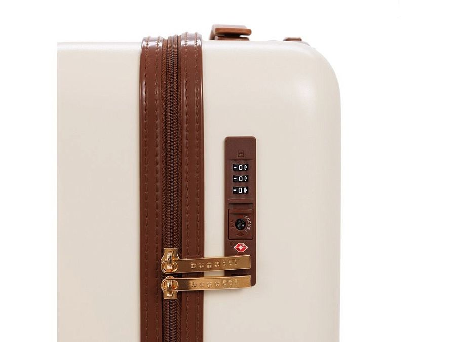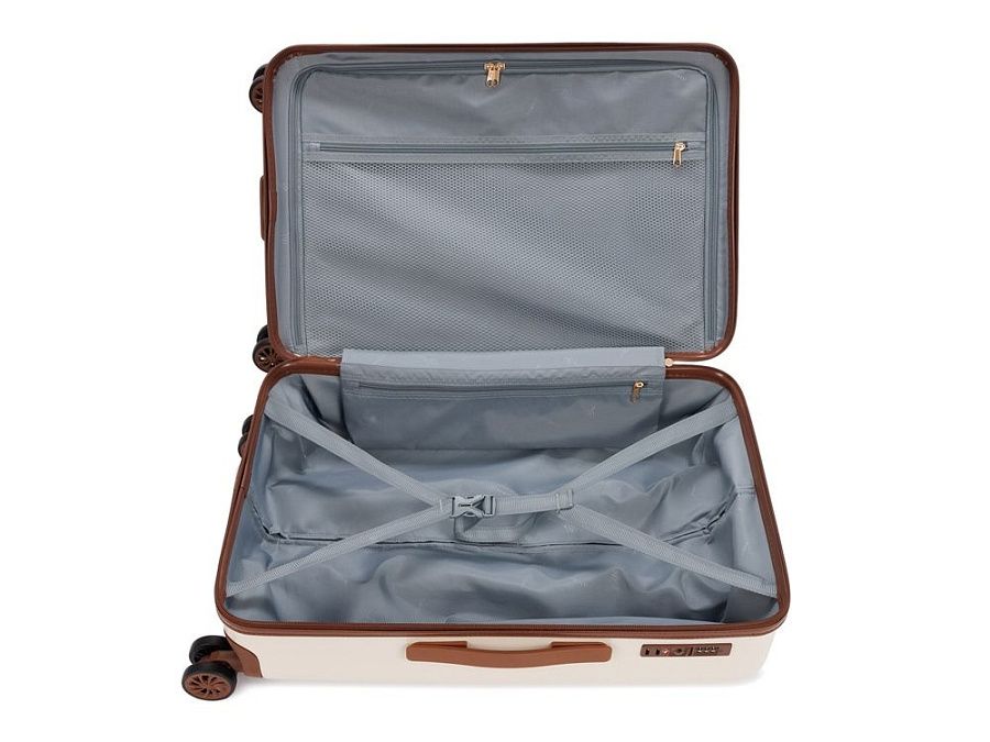 AMELIA воплощает собой неповторимый образ, сочетающий эстетику ретро с современной функциональностью. Вся товарная линейка представлена в великолепных темно-изумрудном и кремовом оттенках. Контрастные детали насыщенного коричневого цвета, бронзовые ручки и фурнитура идеально дополняют дизайн, подчеркивают индивидуальность и выразительность каждой модели. Изготовленные из высококачественного АБС-пластика и поликарбоната, чемоданы AMELIA обладают удивительной прочностью и легкостью. Четыре резиновых колеса с бесшумным ходом и возможностью поворота на 360° обеспечивают плавное передвижение по любой поверхности, сохраняя при этом полную маневренность. Интегрированный замок TSA с трехзначным кодом гарантирует защиту вашего багажа от несанкционированного доступа. Продуманная концепция больших отделений с перегородкой на молнии и дополнительными карманами максимально оптимизирует использование внутреннего пространства. Легкая телескопическая ручка с несколькими положениями фиксации обеспечивает комфорт в использовании для людей разного роста. Удобные ручки сбоку и на дне корпуса облегчают загрузку и выгрузку чемодана. Боковые держатели позволяют разместить дополнительные дорожные аксессуары.