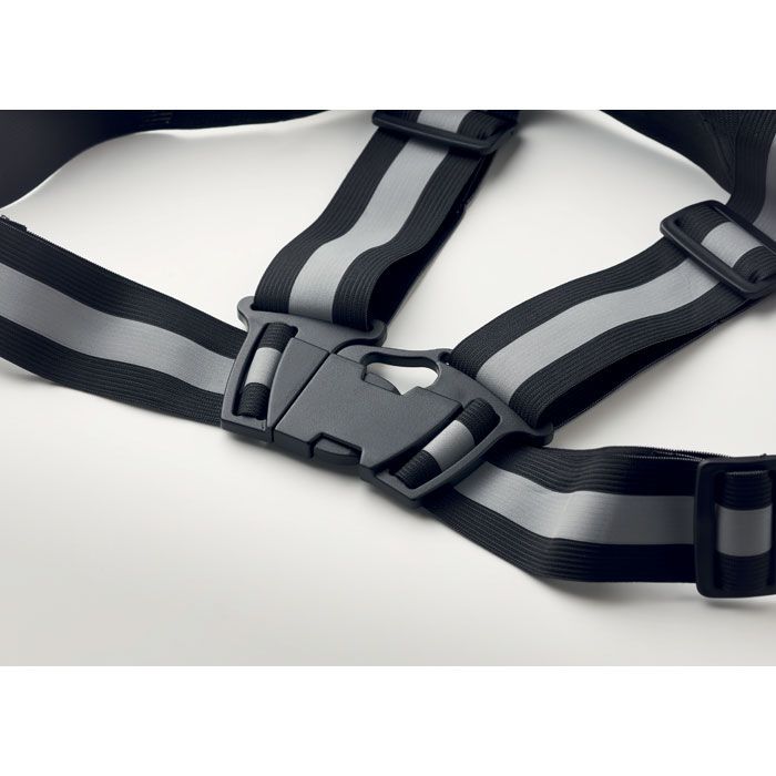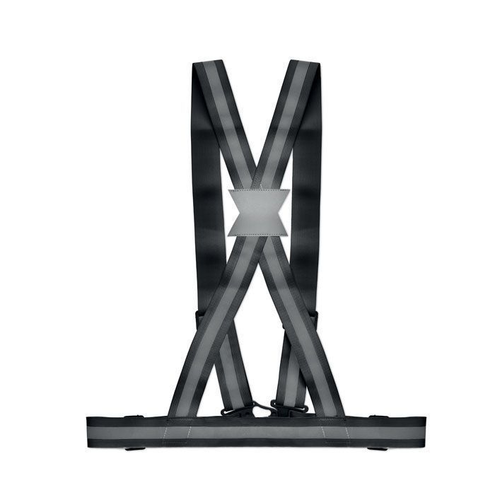 Яркий регулируемый светоотражающий ремень с серебряными полосками. Использовать только для рекламных целей.