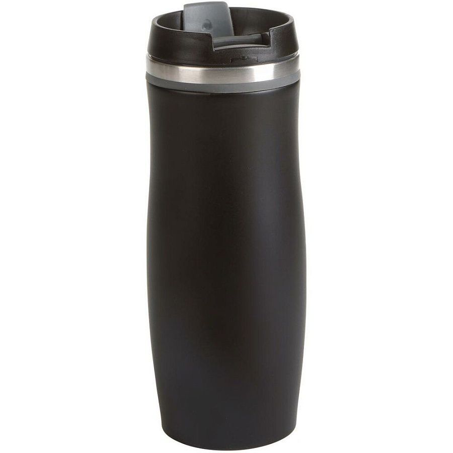 У кружки данной модели есть крайне удобная прорезиненная подкладка, которая не позволяет ей скользить по различным поверхностям. Резиновая крышка очень надежно прилегает к краям кружки и защищает от протеканий жидкости при переворачивании. Объем составляет 400 мл. Интересный эргономичный корпус белого цвета и пять различных цветов крышечки на выбор.