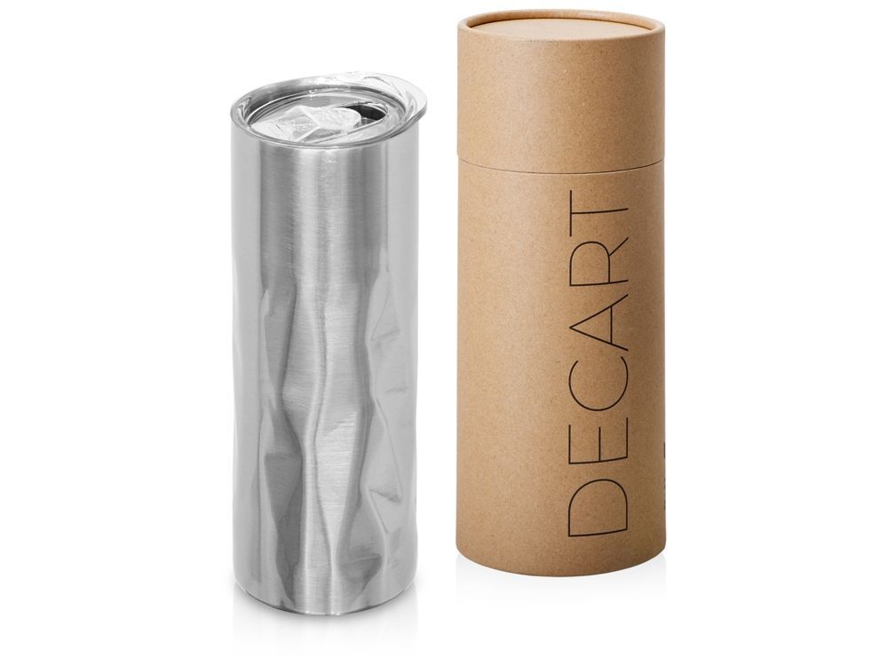 Вакуумная термокружка с двойными стенками из пищевой нержавеющей стали в необычном дизайне. Съемная крышка-непроливайка со слайдером. Поставляется в крафтовом тубусе.
