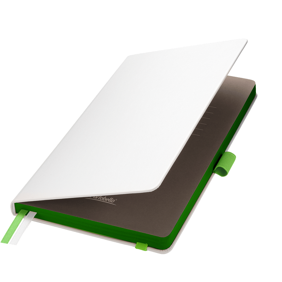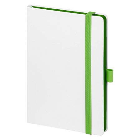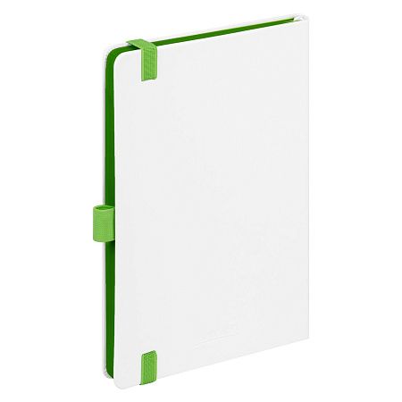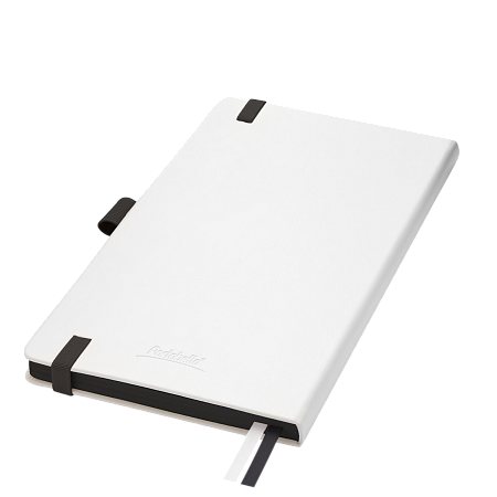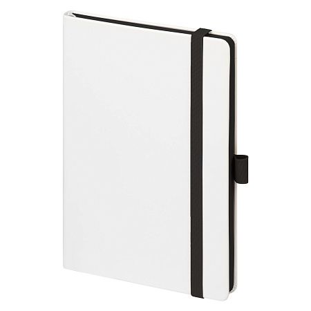 Недатированный ежедневник выполнен в жесткой обложке из искусственной кожи со скругленными уголками. Переплетный материал гладкий, с легкой естественной паутинкой морщин, имеет полуглянцевый блеск. Цвет – чистый белый. Черные матовые форзац и нахзац, а также черный срез блока создают оригинальный динамичный цветовой ансамбль и подчеркивают белизну обложки. Страницы светло-кремового цвета, из гладкого офсета, слегка шелковистые, со скругленными уголками. Добавляют изделию мягкую комфортную теплоту. Двойное атласное ляссе составлено из черной и белой лент. Каждая шириной 6 мм, имеет легкий блеск. Вертикальная фиксирующая резинка прочная, надежная и удобная, в тон срезу. Есть петелька для ручки в тон резинки. Карман на заднем форзаце.