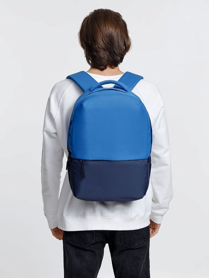Двухцветное исполнение с темным низом и более светлым верхом, с одной стороны, помогает рюкзаку дольше сохранять опрятный внешний вид, а с другой — позволяет активнее и контрастнее выделить логотип компании.