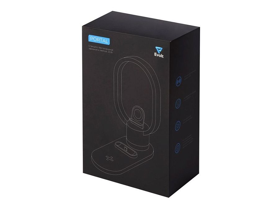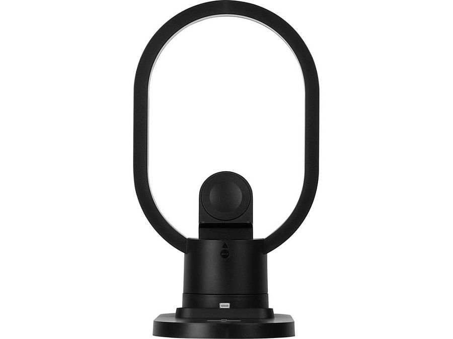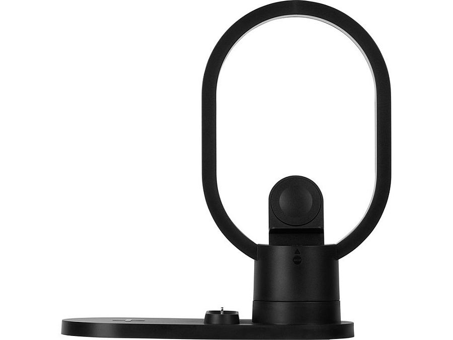 Настольная зарядная станция с лампой для трёх устройств - смартфона с поддержкой беспроводной зарядки, часов Apple и наушников Apple (разъем Lightning). Регулируемый уровень яркости (диммер). Лампу можно вращать вокруг своей оси. Для удобства транспортировки лампу можно отсоединить.