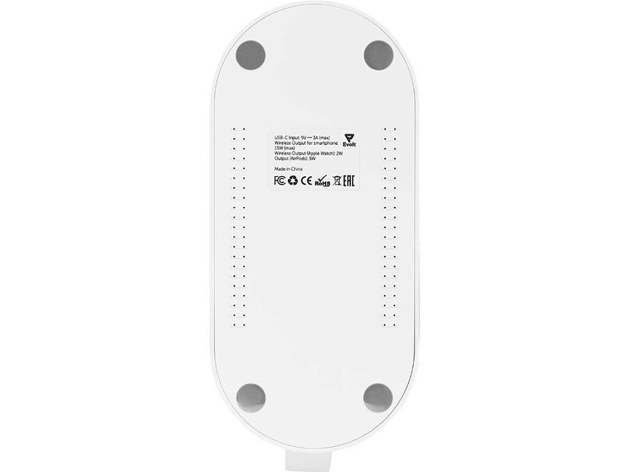 Настольная зарядная станция с лампой для трёх устройств - смартфона с поддержкой беспроводной зарядки, часов Apple и наушников Apple (разъем Lightning). Регулируемый уровень яркости (диммер). Лампу можно вращать вокруг своей оси. Для удобства транспортировки лампу можно отсоединить.