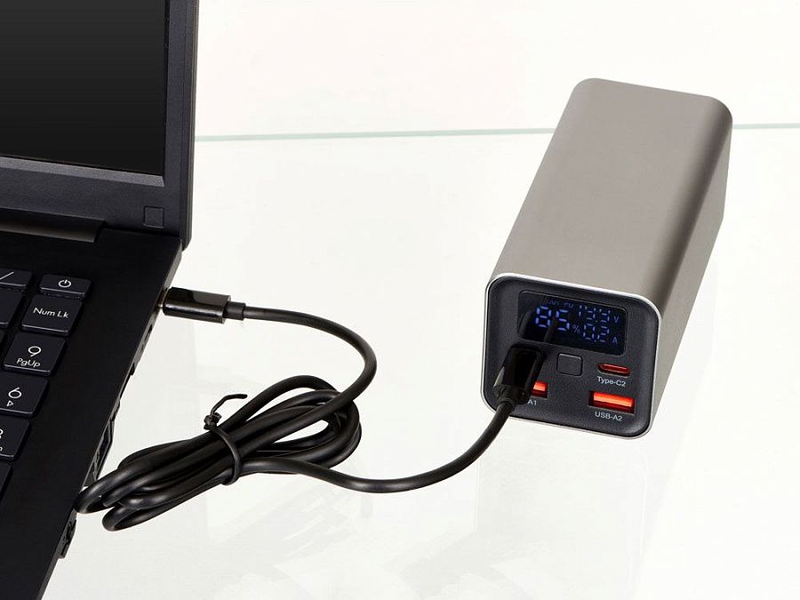 Надежный аккумулятор в металлическом корпусе, который снабжен многоуровневой защитой от скачков напряжения и коротких замыканий. Предназначен не только для ноутбуков*, но и может супер быстро зарядить планшеты и смартфоны (можно подключить до 4-х устройств). Уровень заряда отображается на дисплее, на котором также отображаются текущие напряжение и сила тока. Быструю зарядку теперь можно увидеть в "прямом эфире". Кабель с поддержкой зарядки 65 Вт уже в комплекте.