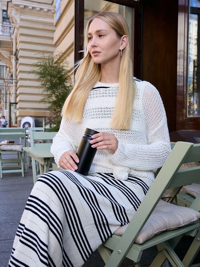 - Герметичная завинчивающаяся крышка с силиконовым уплотнителем и питьевой системой с клапаном — технология 360° позволяет одним нажатием открывать кружку и пить с любой стороны