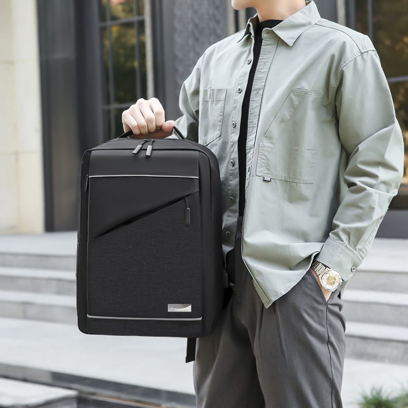 Одно большое отделение закрывается молнией со скрытым звеном. Внутри большой уплотненный карман для ноутбука 15,6 дюймов с клапаном на велькро и карман-органайзер для мелких аксессуаров. На передней стенке два больших скрытых кармана на молнии , боковой открытый карман и USB-разъем с проводом для подключения внешнего аккумулятора. Уплотнённая короткая ручка для дополнительного комфорта рук. Уплотнённые плечевые ремни регулируются по длине.