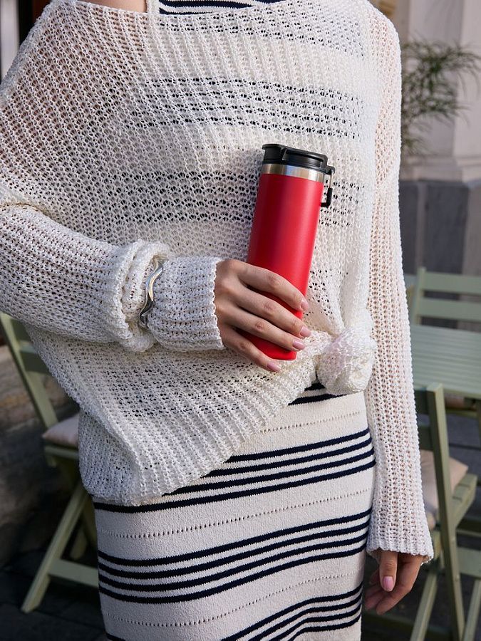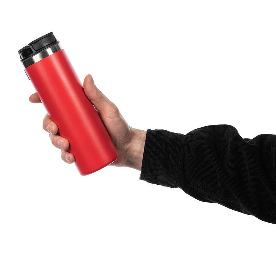 Лаконичный дизайн с ровным цилиндрическим корпусом — специально для круговой печати и гравировки, достаточный объем и привлекательная деталь в виде подвижной квадратной ручки для переноски.