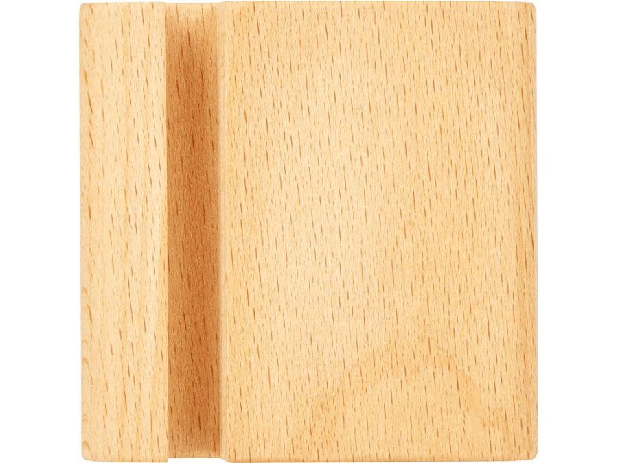 Подставка для смартфона изготовлена из дерева бука, что обеспечивает прочность и экологичность изделия. Она имеет две разные выемки, которые позволяют установить смартфон различных размеров как с чехлом, так и без него. Материал безопасен и подходит для любых поверхностей. Легкий уход за подставкой также делает ее практичной и удобной в использовании.