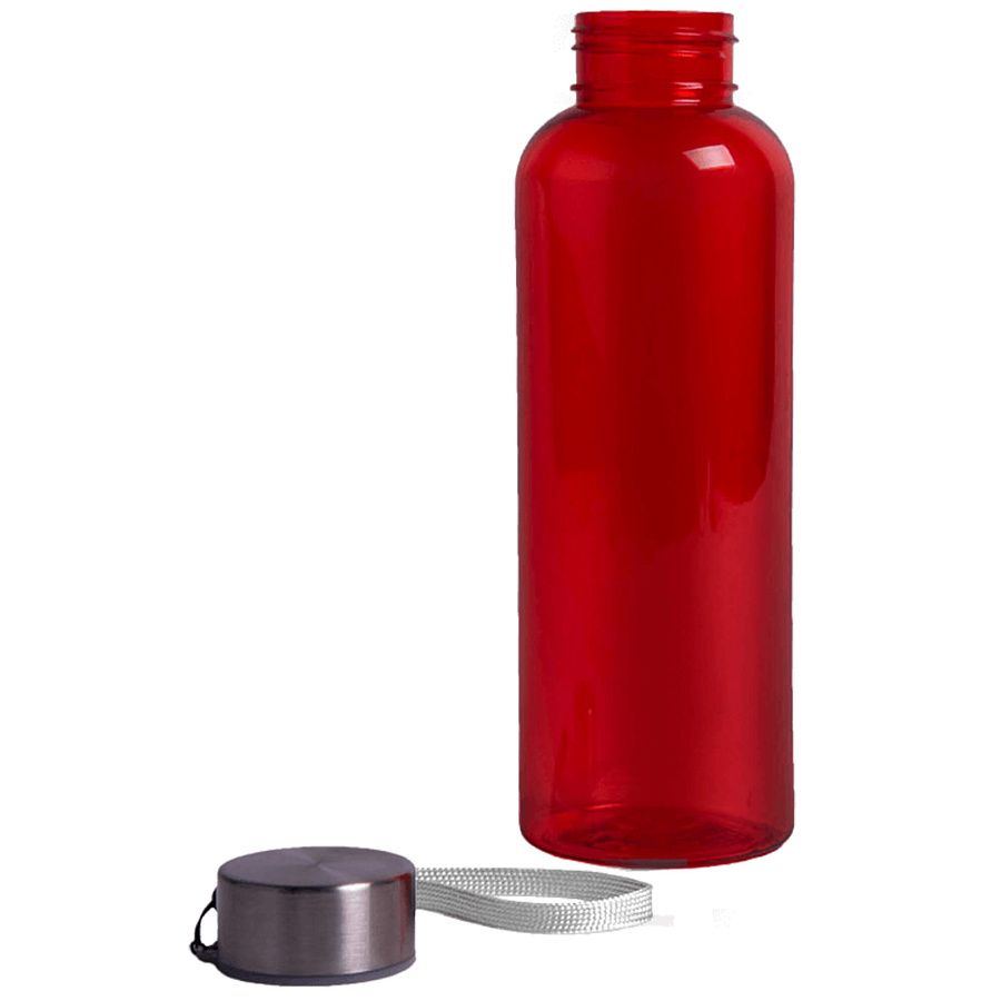 Пластиковая цветная бутылка с металлической крышкой.