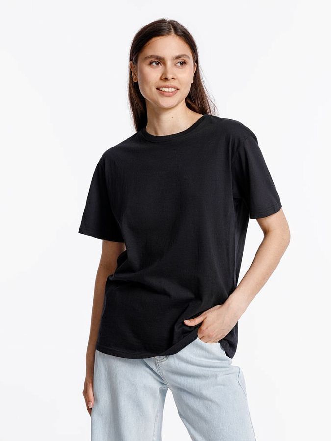 Базовая футболка унисекс без боковых швов. Полотно прошло активное крашение и предварительную усадку, благодаря чему изделие надолго сохраняет цвет и форму.