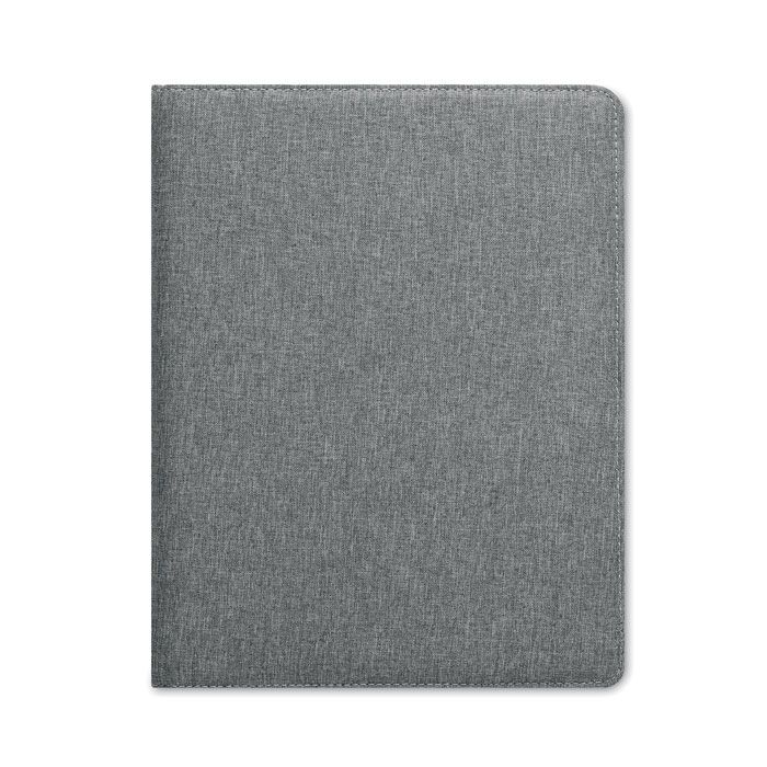 Папка формата A4 из двухцветного материала 300D RPET. Содержит внутренние отделения и петлю для ручки. В комплект входит разлинованный блокнот на 20 листов.