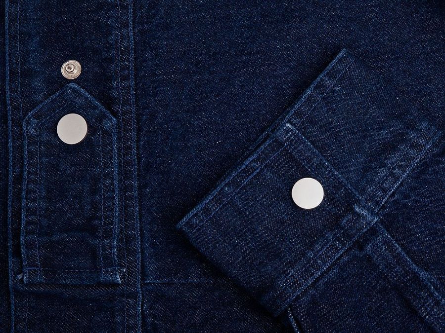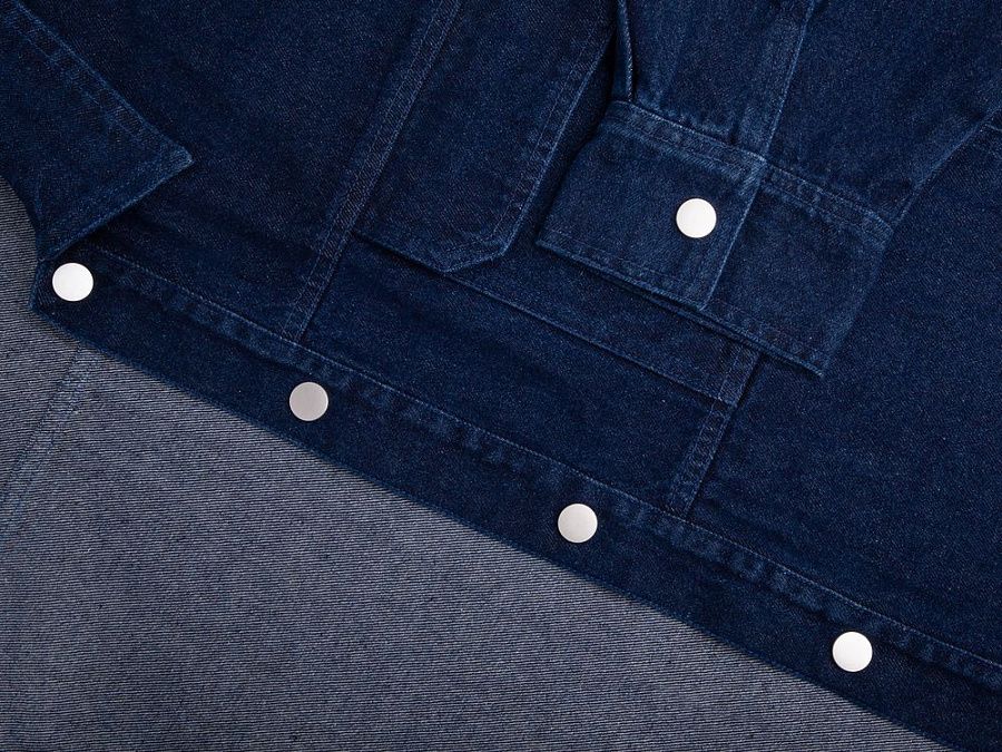 Джинсовая куртка унисекс на кнопках свободной посадки.