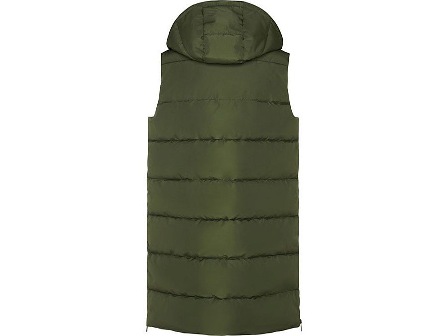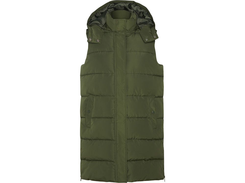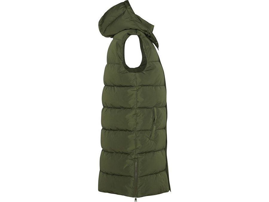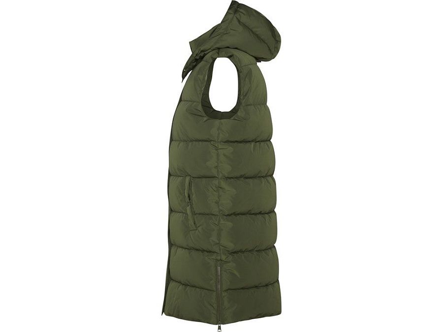 Женский стеганый жилет со съемным капюшоном.