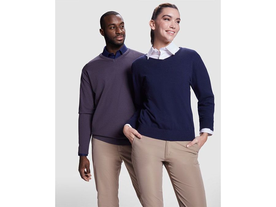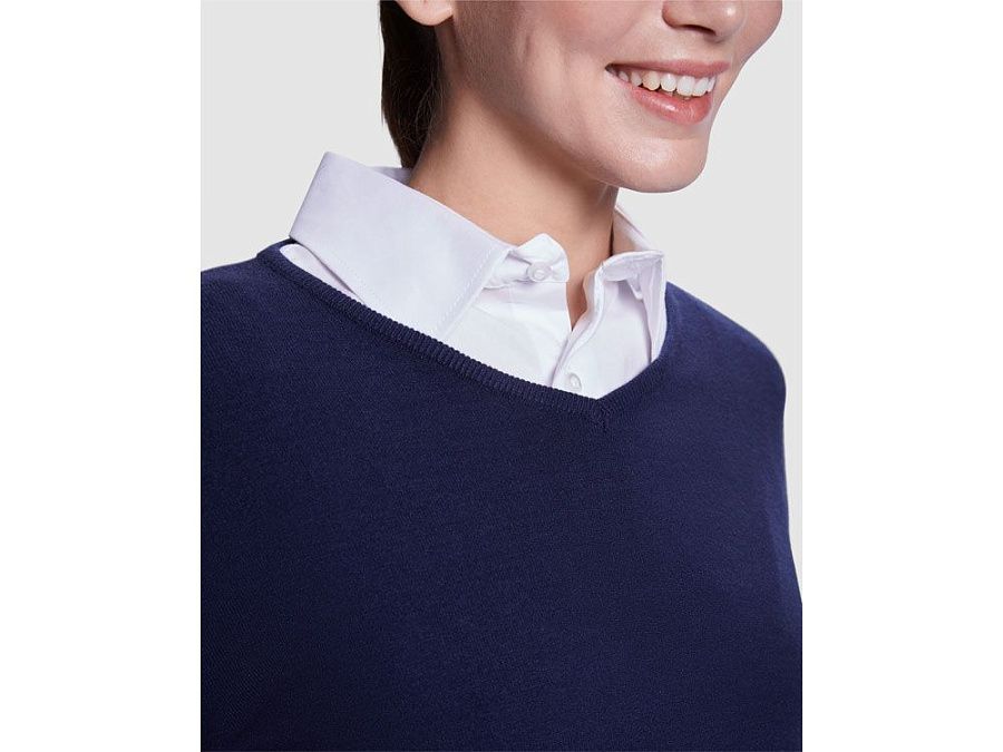 Джемпер c V вырезом тонкой вязки для женщин. Отделка рибом 1х1 по горловине, низу и манжетам