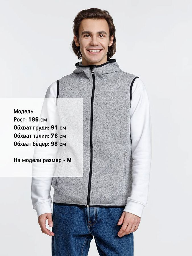 Вязаный жилет унисекс на молнии с капюшоном.