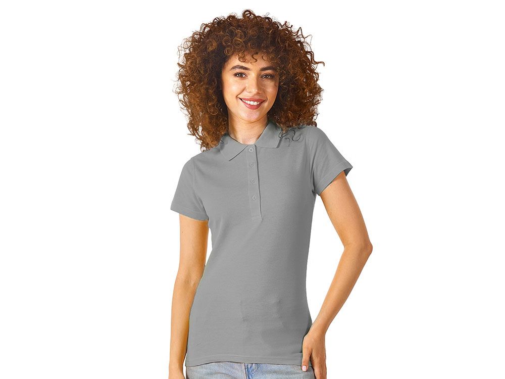 Женская рубашка-поло First. Воротник 1х1. Обшивка внутри воротника. Мужская и детская модели с 2 пуговицами, женская - с 4 пуговицами. Пуговицы с гравировкой в тон. Пике, 100% хлопок. 160 г/м2.