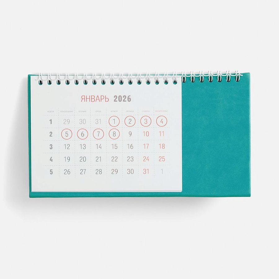 Настольный, перекидной календарь-домик выполнен из материала Latte, цвет морской волны II.