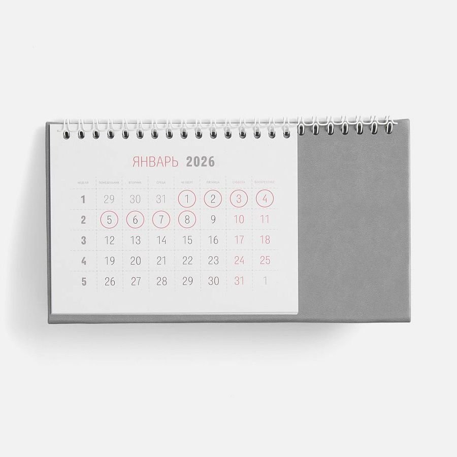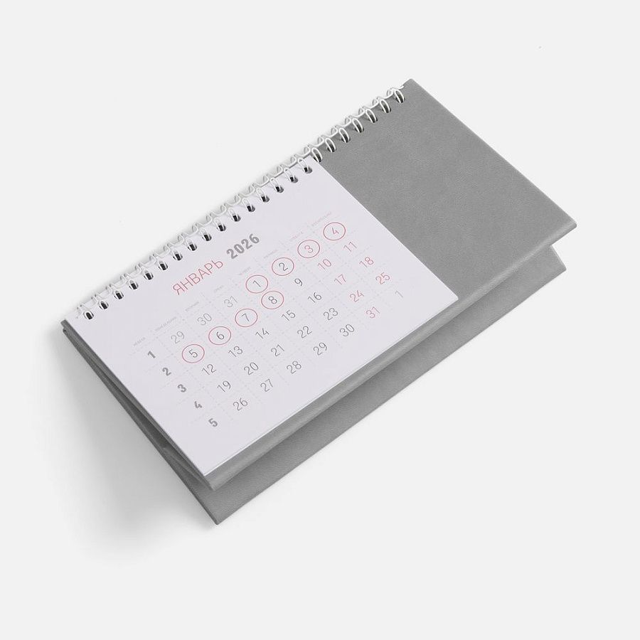 Настольный, перекидной календарь-домик выполнен из материала Latte, серый СС.