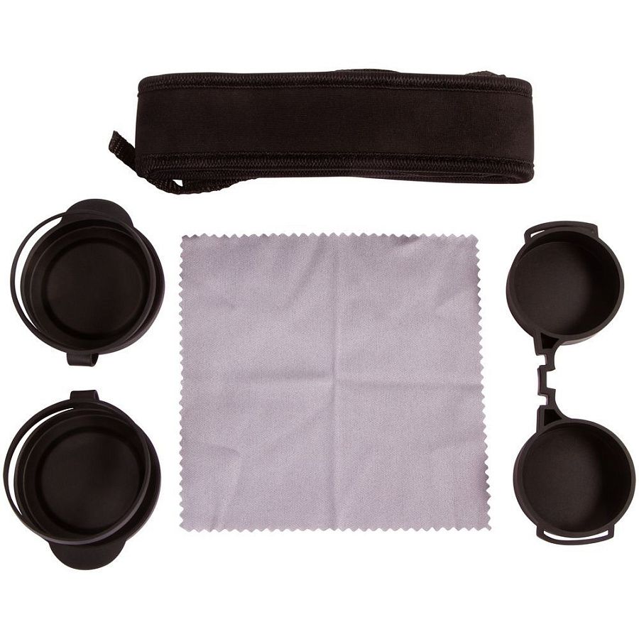 Легкий противоударный корпус с обрезиненной поверхностью. При необходимости бинокль можно устанавливать на штатив.В комплект входит чехол из полиэстера и защитные крышки окуляров и объективов.