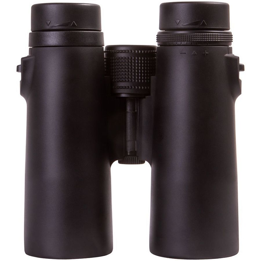 Бинокль создан на базе roof-призм и линз, сделанных из стекла BK-7. На линзы нанесено полное просветляющее покрытие — оно улучшает светопропускание и повышает качество картинки. У правого окуляра есть диоптрийная коррекция — с помощью специального кольца можно отрегулировать резкость в зависимости от особенностей зрения наблюдателя. Для фокусировки используется барабан, расположенный в центре корпуса. У окуляров увеличенный вынос зрачка и удобные поворотно-выдвижные наглазники, положение которых легко регулировать.