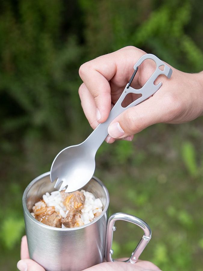 Twin Win — это не только любимая многими туристами универсальная «ложка-вилка» (или spork — spoon + fork). Это еще и компактный мультитул со множеством других функций, который сэкономит место в рюкзаке и выручит в разных походных условиях, будь то отдых в кемпинге, рыбалка или охота.