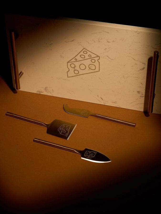 Набор для сыра со стеклянной доской «Gauda», цвет: прозрачный, натуральный, коричневый