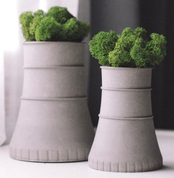 Градирня (труба) со мхом, высотой 12 см для декора рабочего пространства или интерьера, мох стабилизированный не требует никакого ухода.