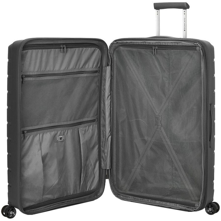 • Чемодан с 2 отделениями: одно отделение с сетчатым разделителем и прижимными ремнями, а второе оснащено перегородкой на молнии с двумя карманами