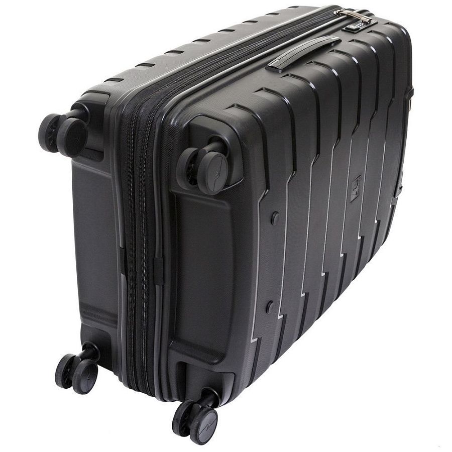 - Чемодан с 2 отделениями: одно из них с фиксирующими ремнями и сетчатой шторкой на молнии, второе — с разделителем на молнии