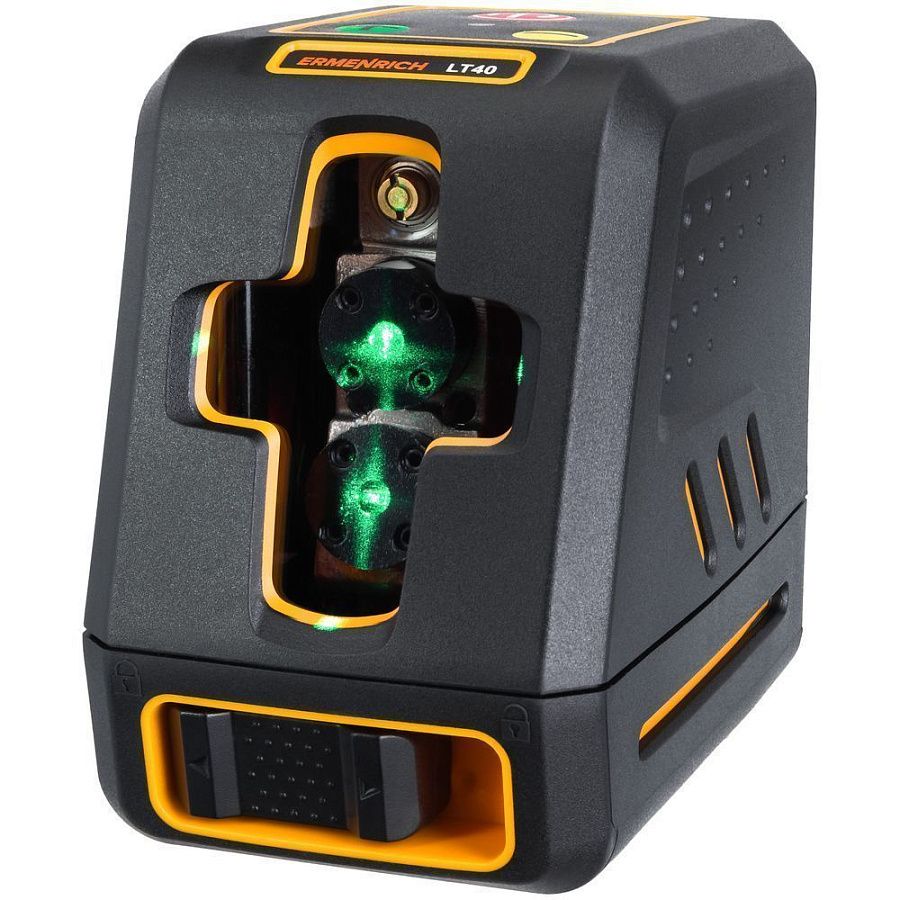 Автоматическая система компенсации, которой снабжена модель Ermenrich LT40, производит самовыравнивание лазерных лучей, помогая добиться точного результата и избежать последствий вибраций. Защита от пыли и брызг позволяет применять уровень в помещениях, где идет ремонт, и на стройплощадках.